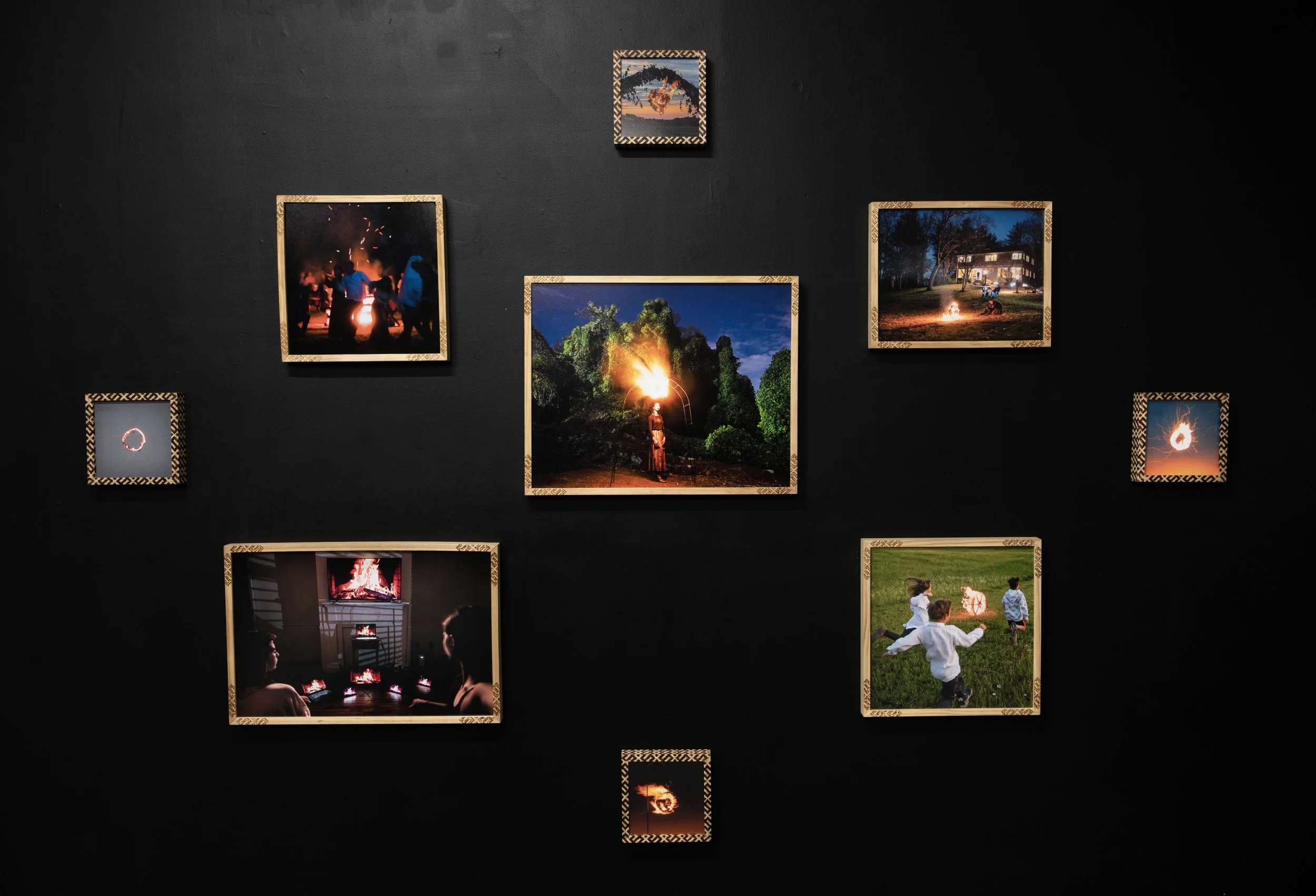 Frames and wood burning done by hand, printed on archival inkjet paper; approximately 12ftx12ft.